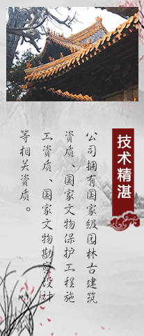 堅持質量為先,信譽為重,管理為本,服務為誠的理念。本著對社會、對建設單位負責的原則,將工程質量、安全生產放在工作的重要位置。我們堅持發展古建藝術,弘揚民族文化,作為企業的經營管理理念。曲阜古建筑義德古建始終秉承“科學管理,創精品工程,打造古建筑行業標準”的方針,追求更高質量,為文物保護、傳統建筑事業做出貢獻。